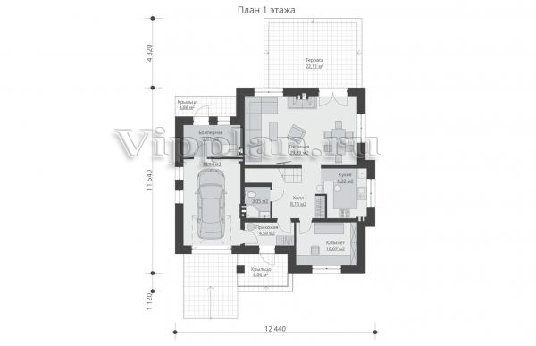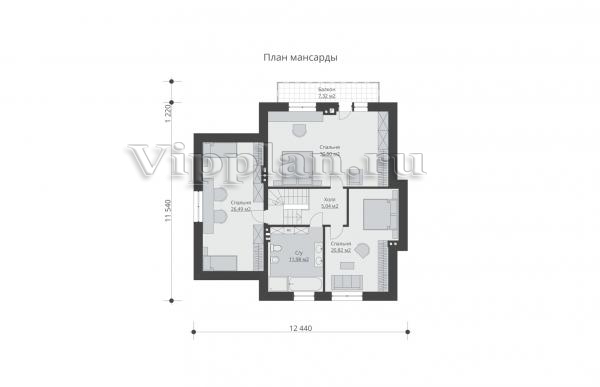 | Размеры дома: | 12.44м×11.54м |